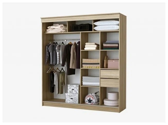 Шкаф-купе Танго   — это двухстворчатый шкаф, который идеально подходит для гостиных, спален и прихожих. Стильный дизайн фасада из двух створок в сочетании зеркала и стекла лакобель придется по вкусу любителям современного стиля. Внутреннее наполнение шкафа-купе поможет решить вопрос с размещением и хранением вещей и белья. Наполнение шкафа: платяное отделение со штангой для вешалок, бельевые и антресольные полки, четыре выдвижных ящика. Глянцевая лакобель с зеркалом на фасаде подчеркивает стиль современного интерьера.