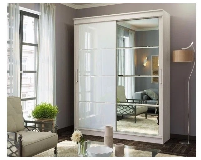 Шкаф-купе Танго 2  — это двухстворчатый шкаф, который идеально подходит для гостиных, спален и прихожих. Стильный дизайн фасада из двух створок в сочетании зеркала и стекла лакобель придется по вкусу любителям современного стиля. Внутреннее наполнение шкафа-купе поможет решить вопрос с размещением и хранением вещей и белья. Наполнение шкафа: платяное отделение со штангой для вешалок, бельевые и антресольные полки, два выдвижных ящика. Глянцевая лакобель с зеркалом на фасаде подчеркивает стиль современного интерьера.