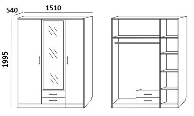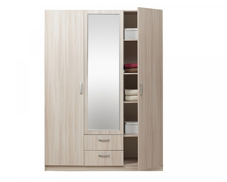 5.14Z - шкаф 3-х дверный с зеркалом - сочетание классических форм, лаконичного дизайна и функциональности. Высокие показатели качества и надежности от известного призводителя корпусной мебели по недорогой цене.  Стандартная комплектация: Платье/Белье. В платяном отделении: одна полка и 1 штанга, в бельевом отделении: четыре полки. Дополнительно укомплектован двумя выдвижными ящиками. Зеркало на центральной дверке входит в стоимость. Установлен на цоколе.