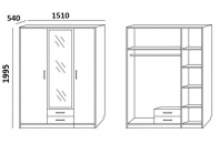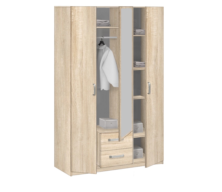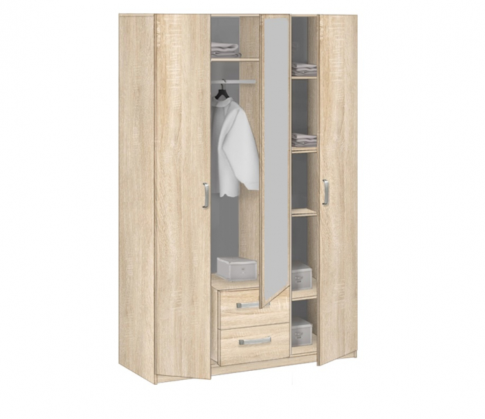 5.14Z - шкаф 3-х дверный с зеркалом - сочетание классических форм, лаконичного дизайна и функциональности. Высокие показатели качества и надежности от известного призводителя корпусной мебели по недорогой цене. Стандартная комплектация: Платье/Белье. В платяном отделении: одна полка и 1 штанга, в бельевом отделении: четыре полки. Дополнительно укомплектован двумя выдвижными ящиками. Зеркало на центральной дверке входит в стоимость. Установлен на цоколе.