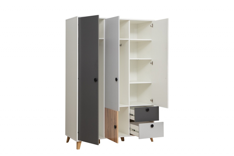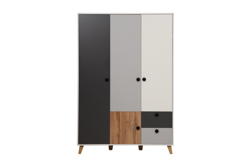 Вместительный шкаф комбинированный Артис 69.01 дополнит интерьер гостиной или спальни, и станет центром в системе хранения одежды и белья. Универсальное цветовое решение, качественные материалы и современный дизайн - отличительные черты модулей коллекции Артис. Конструкция шкафа с тремя распашными дверцами, внутри штанга для вешалок, ниши для хранения. Также с внешней стороны два вместительных выдвижных ящика. На фасадах дверей и ящиков стильные ручки. Шкаф устанавливается на высокие опоры, что позволит сохранять порядок в доме и обеспечат легкий доступ под него.