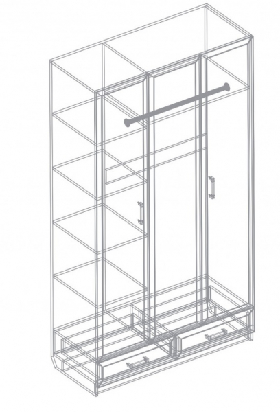 Стильный и модный шкаф Наоми. Вместительный, глубокий шкаф. Большое отделение со штангой,два выдвижных ящика и отделение с полками позволят вам разместить все ваши вещи. Большое зеркало на центральной двери визуально увеличат пространство в вашей комнате. Шкаф отлично подойдет для большой семьи и поможет без особых затрат разместить множество ваших вещей.