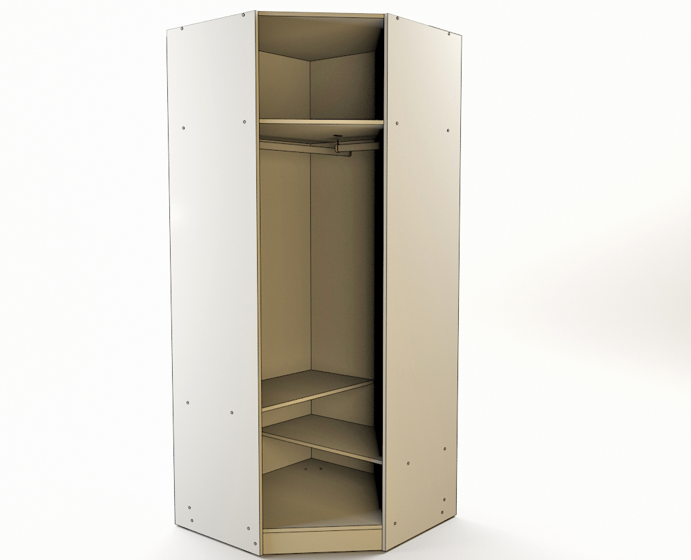 Угловой шкаф для одежды "Шарм" изготавливается из ЛДСП. Изделие практичное, износостойкое, высокого качества. Использование добротных материалов обеспечивает изделию продолжительный срок службы.Цветовое исполнение шкафа смотрится стильно, привлекательно, свежо. Модель впишется в интерьер любой комнаты вашего дома.Внутреннее наполнение шкафа представлено просторным отсеком со штангой и двумя вместительными полками.Такой шкаф будет служить хорошим местом хранения для верхней одежды, костюмов, коробок, сумок и прочих вещей.