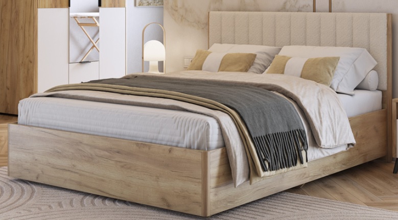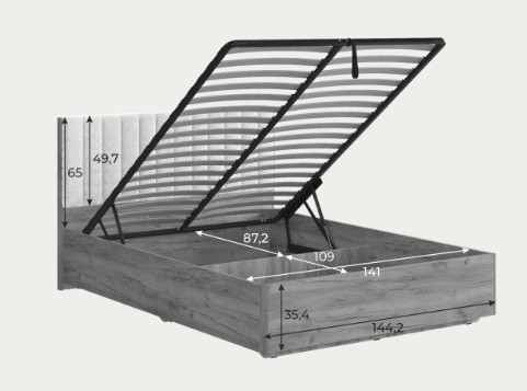 Состоит из: изголовья с мягким элементом, каркаса из ЛДСП и места спального с подъемным основанием..