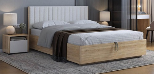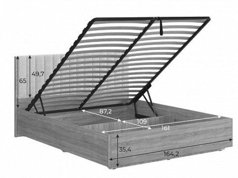 Состоит из: изголовья с мягким элементом, каркаса из ЛДСП и места спального с подъемным основанием..
