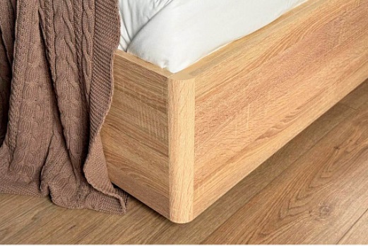 Эта кровать выполнена из прочного ЛДСП с мягким изголовьем из приятного на ощупь и практичного в быту материала. Полукруглые МДФ профили в изножье и изголовье обеспечат безопасность и комфорт.