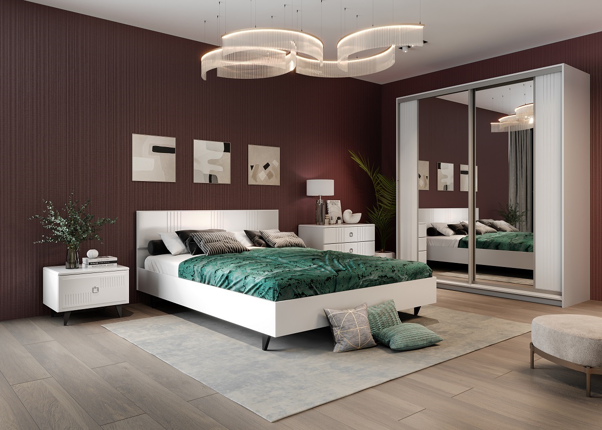 Кровать Наоми - это стильный оригинального дизайна предмет мебели.Кровать с жёстким основанием с отверстиями для выхода воздуха, состоящим из двух щитов прикреплённых к спинке головной, спинке ножной и трём опорным поперечным стенкам с