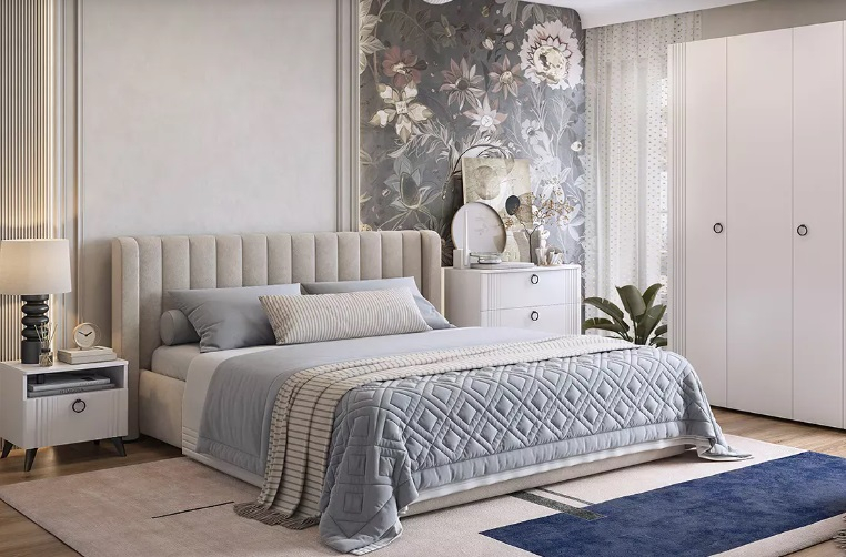 Обивка кровати выполнена из высококачественного велюра, который приятен на ощупь и добавляет шарма и элегантности вашей спальне.
