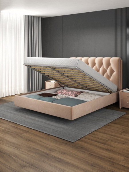 Кровать «Империя Голд» с подъемным механизмом — элегантная, стильная, современная модель, которая обеспечит здоровый и комфортный отдых, а также на протяжении многих лет сохранит свой первозданный внешний вид. Наличие ортопедического основания, закрепленного на металлическую раму, гарантирует, что Ваш сон будет крепким и здоровым.Надежный подъёмный механизм позволяет легко и бесшумно поднять основание и получить доступ к просторному отсеку для постельных принадлежностей. Для повышенного удобства ниша разделена на секции, это позволяет грамотно организовать место для хранения различных вещей.Высокое изголовье имеет мягкую накладку, которая покрыта красивой обивкой. Объемная форма спинки позволяет удобно опереться и принять комфортное положение полусидя.Практичная и функциональная кровать станет изысканным украшением интерьера Вашей спальни.