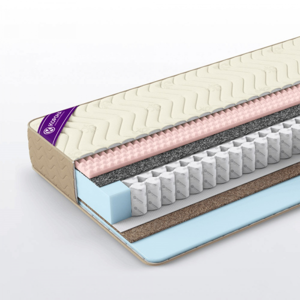 Модель на основе блока независимых пружин TFK 500 имеет классическую конструкцию, при этом, благодаря двусторонней жесткости, подойдет большинству пользователей, предпочитающих среднюю упругость спального места. Рифленая массажная пена высокой плотности способна выдерживать длительные локальные нагрузки без потери прочности.