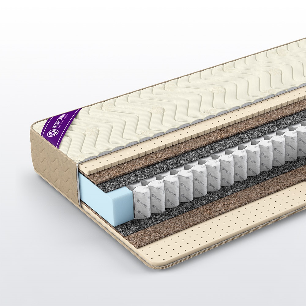 Преимущества натурального латекса в его отличных эксплуатационных свойствах. Способность выдерживать длительные нагрузки, сохраняя свою эластичность и комфорт делает этот материал одним из самых «живучих» наполнителей. Данная модель имеет среднюю жесткость.