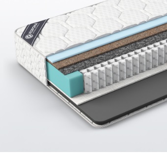 Популярная модель на основе блока «Multipocket S1000». Классическое сочетание кокосовой койры и эластичной пены с одной стороны подойдет большинству пользователей, предпочитающих среднюю жесткость. Вторая сторона матраса, благодаря применению наполнителя «Bicotton», обладает ощутимо более высокой жёсткостью, что несомненно оценят любители более упругих моделей.