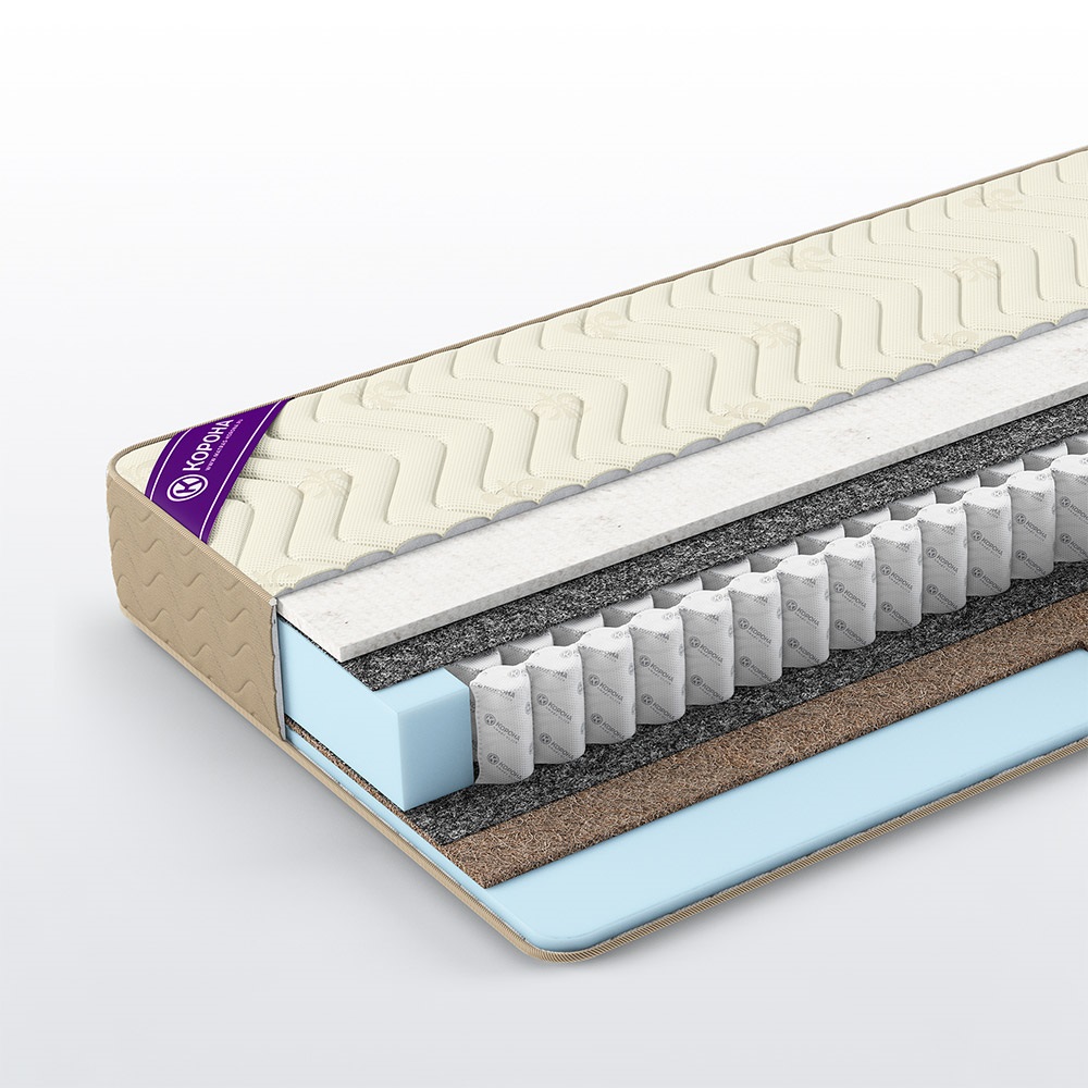 Мягкая сторона из гипоаллергенного материала «Струттофайбер» разгружает позвоночник и благодаря большому количеству волокон хорошо сохраняет тепло. Более жесткая сторона с кокосовой койрой и пенополиуретаном обладает высокой воздухопроницаемостью, что делает ее более прохладной.