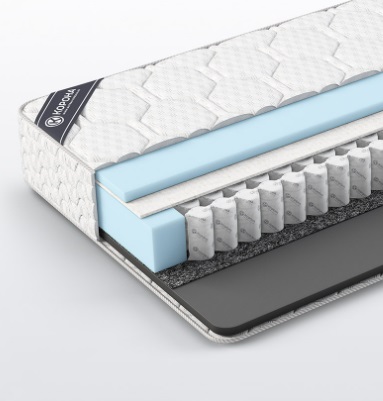 Модель на основе ортопедического блока TFK 500, подходящая широкому кругу пользователей как по допустимой максимальной весовой нагрузке, так и по уровню комфорта. Применение материала «Bicotton» в качестве наполнителя, распределяющего нагрузку, с одной стороны матраса делает его упругим и жестким. Сочетание с другой стороны термовойлока и угольной пены высокой плотности «Сarbon Foam» будет менее жестким и более комфортным.