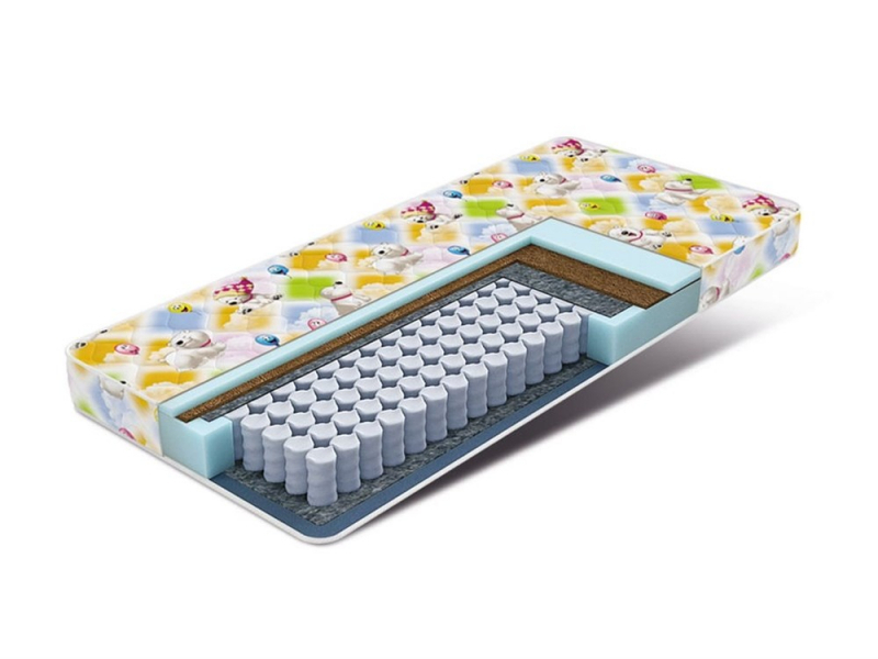 Односторонний детский пружинный матрас Совенок выполнен на базе блока независимых пружин EVS-mini. Этот пружинный блок отлично подходит для детей за счет обеспечения точечной поддержки тела. EVS-mini позволяет позвоночнику ребенка находится в анатомически правильном положении на протяжении всей ночи. Ближе к пружинному блоку расположен слой натуральной кокосовой койры, которая служит для улучшения распределения веса между пружинами и для увеличения упругости матраса. Над кокосом располагается слой ячеистой рельефной ортопедической пены. Эта пена оказывает эффект микромассажа и способствует улучшению циркуляции крови. Периметр матраса усилен плотной ортопедической пеной. Чехол пошит из яркого поликоттона с детским принтом.
