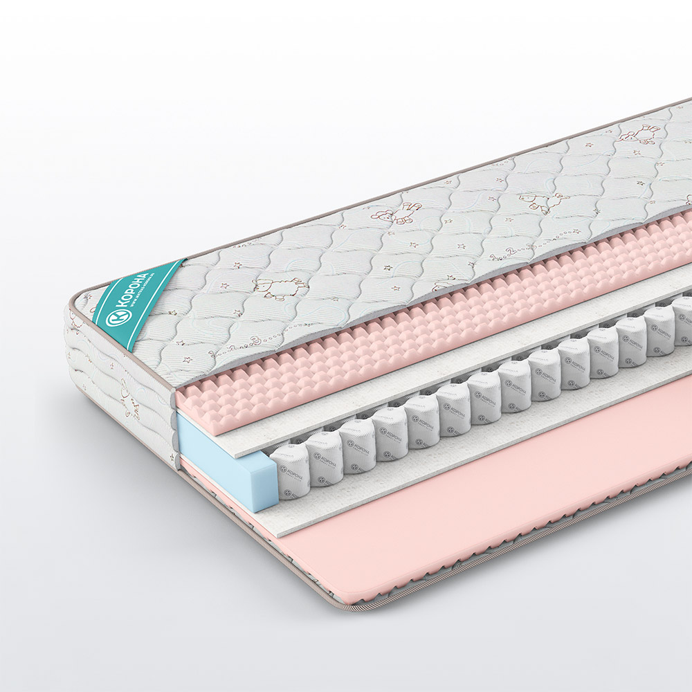 Самая жесткая и износостойкая модель в серии. Такой матрас легко выдержит вес ребенка и при необходимости вес взрослого человека. Комбинация бикоттона и массажной пены плотностью 25 кг/м позволяет эффективно распределять весовую нагрузку, сохраняя высокие эксплуатационные показатели. За счет «трехмерной» поверхности пены улучшается воздухообмен, а с ним гигиеничность спального места. Матрас комплектуется мягким и дышащим трикотажем «OVIS».
