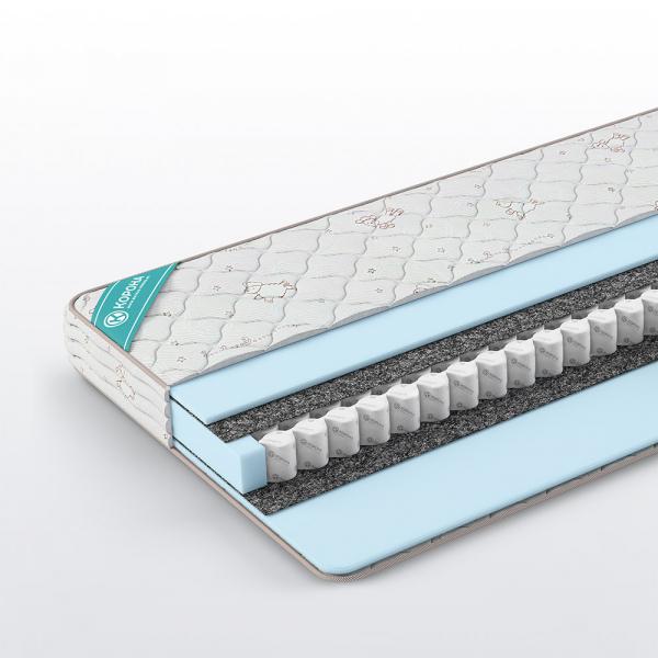 Модель на основе блока независимых пружин для детей старше 7 лет. В данном матрасе используются пружины высотой 8 см. Они обладают высокой упругостью и выдерживают большие локальные нагрузки. В сочетании с термопрессованным войлоком и пенополиуретаном такой пружинный блок обеспечивает матрасу необходимую жесткость для формирования правильной осанки.