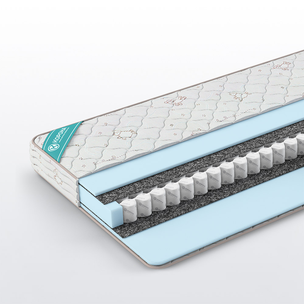 Модель на основе блока независимых пружин для детей старше 7 лет. В данном матрасе используются пружины высотой 8 см. Они обладают высокой упругостью и выдерживают большие локальные нагрузки. В сочетании с термопрессованным войлоком и пенополиуретаном такой пружинный блок обеспечивает матрасу необходимую жесткость для формирования правильной осанки.