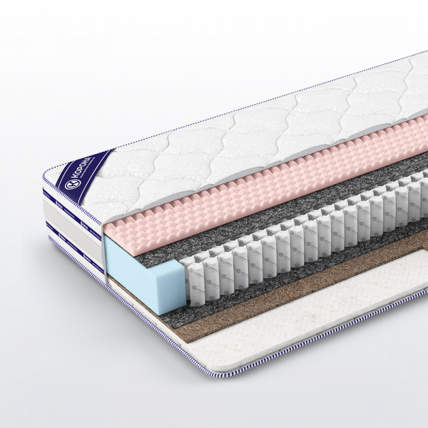 Наиболее популярная модель на основе блока S1000. Матрас имеет две степени жесткости сторон: одна сторона с кокосовой койрой и слоем гипоаллергенного струттофайбера, другая - с термовойлоком и массажной пеной, поэтому данная модель подойдет по своей жесткости и тем, кто ценит комфорт в матрасе, и людям, предпочитающим более упругую поверхность. Чехол предоставляется на выбор: износостойкий жаккард или мягкий «дышащий» трикотаж.