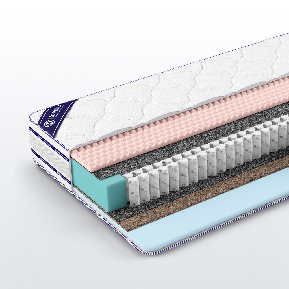 Наиболее популярная модель на основе блока S1000. Матрас имеет две степени жесткости сторон: одна сторона с кокосовой койрой и слоем гипоаллергенного струттофайбера, другая - с термовойлоком и массажной пеной, поэтому данная модель подойдет по своей жесткости и тем, кто ценит комфорт в матрасе, и людям, предпочитающим более упругую поверхность.