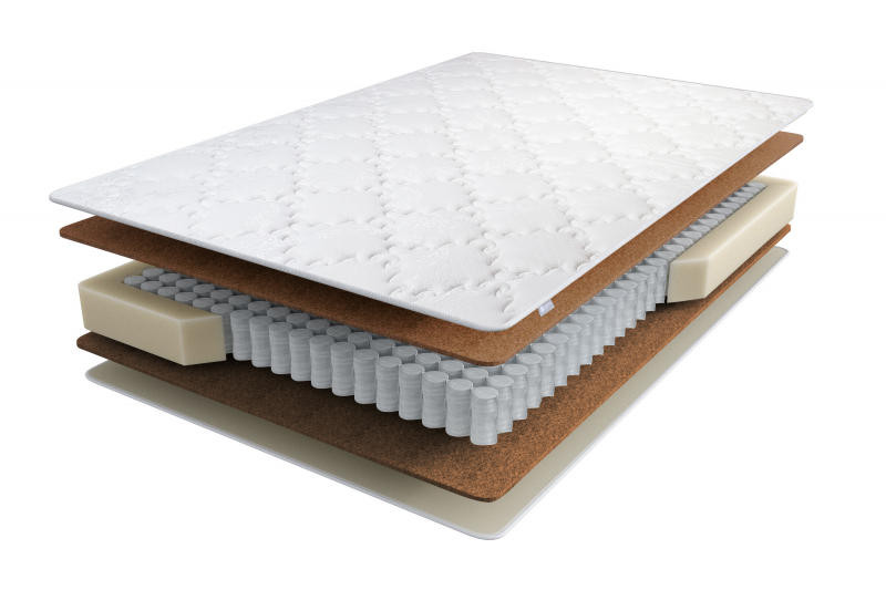 Кокосовое полотно с двух сторон толщиной 10 мм. создает ровную поверхность средней жесткости, а высокоэластичная пена в сочетании с синтепоном и с трикотажной тканью lux обеспечивает максимальный комфорт.