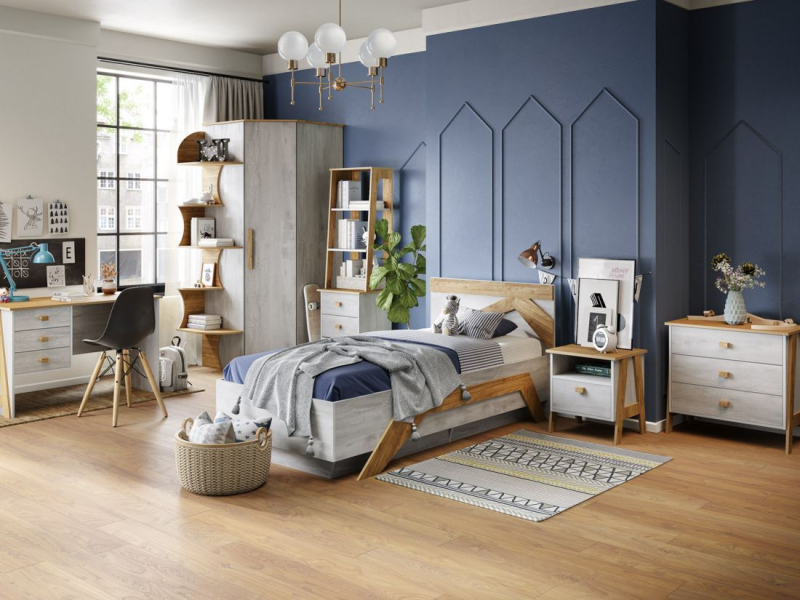 Кровать 900 Скандинавия бетон пайн/дуб наварра
