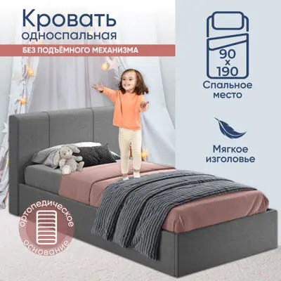 Односпальная кровать Марсель без подъемного механизма 90х190 см  позволит насладиться максимальным комфортом во время сна и отдыха. Изделие имеет стильный дизайн. Обивка износостойкая и мягкая. Ребенок будет чувствовать себя максимально комфортно и безопасно.Кровать с ортопедическим основанием универсальная. Дополнительное удобство этой модели создает высокое мягкое изголовье, о которое удобно опираться в положении "полулежа". Декоративная прострочка на нем выглядит эстетично и выгодно подчеркивает стиль кровати.Максимальная нагрузка 100 кг без учёта веса матраса.