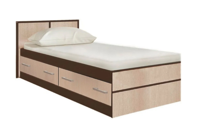 Односпальная кровать Сакура выполнена из ЛДСП высокого качества в контрастных цветах венге/ дуб белёный данная модель оснащена двумя выдвижными ящиками, в которых можно хранить постельные принадлежности или игрушки, изделие не имеет ножек, а значит избавит вас от скопления пыли под основанием.