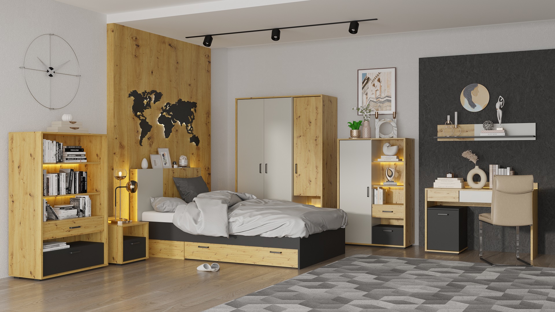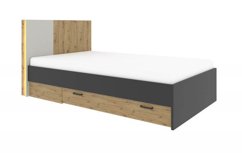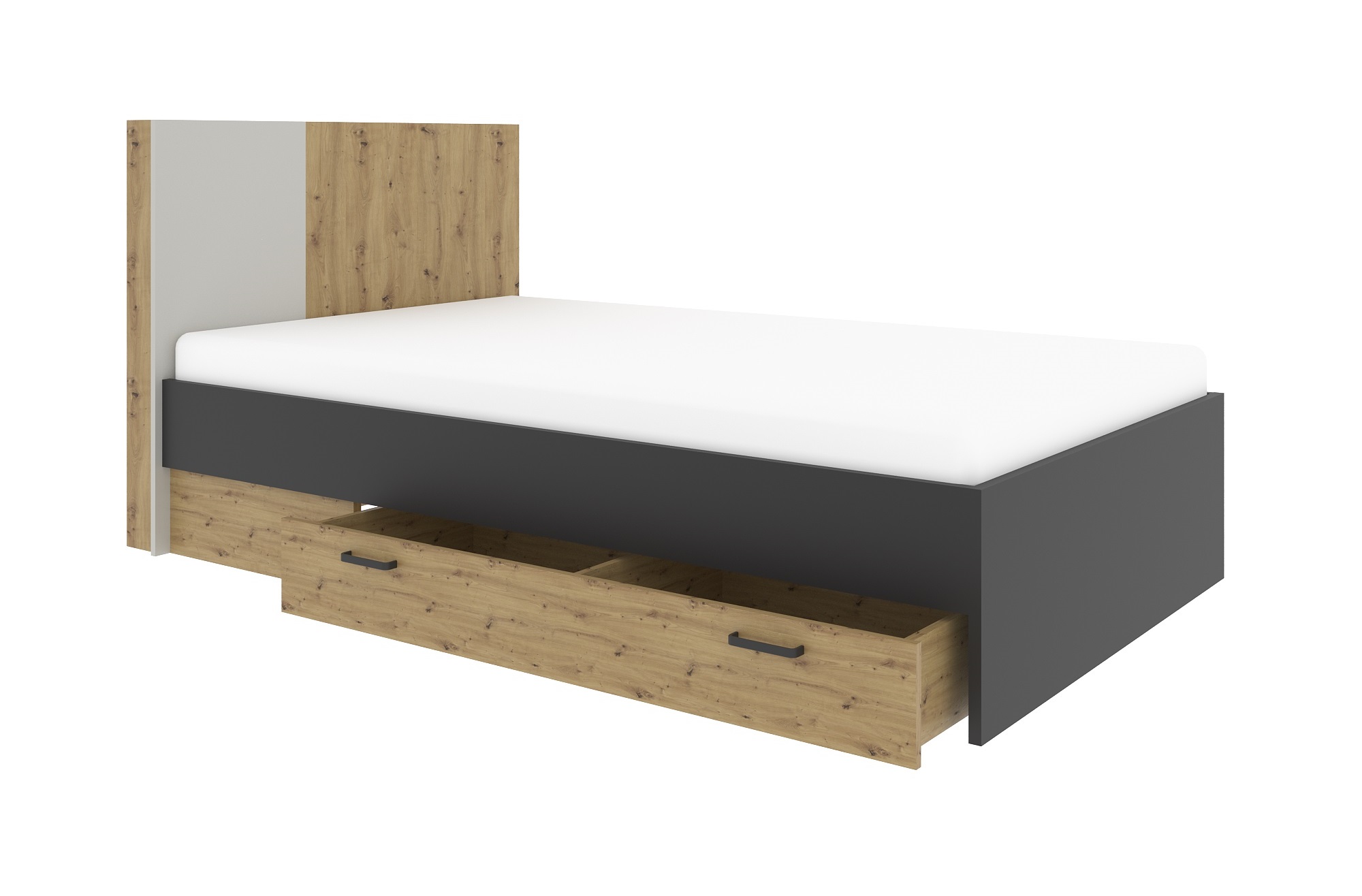 Кровать KUBO 90*200 , с ящик. Артизан\черный\серый