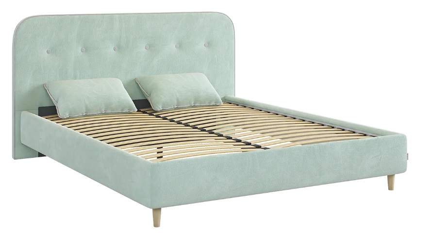 Кровать 1,2 Лео мята велюр /галька велюр/основание
