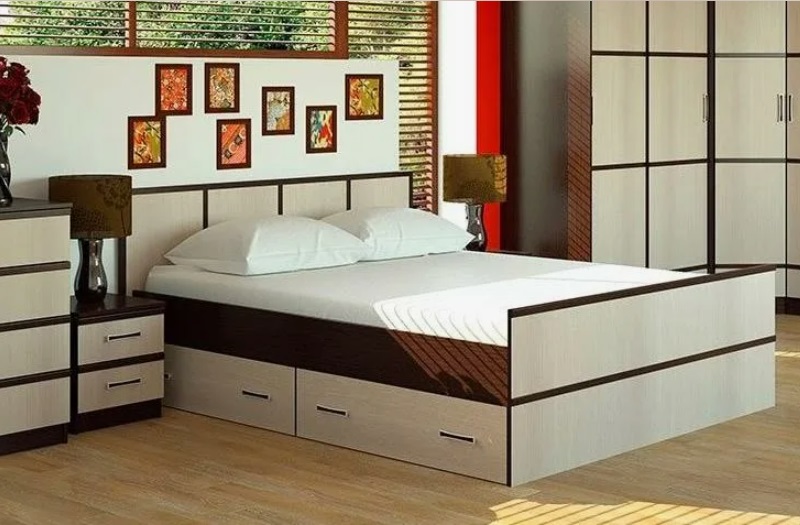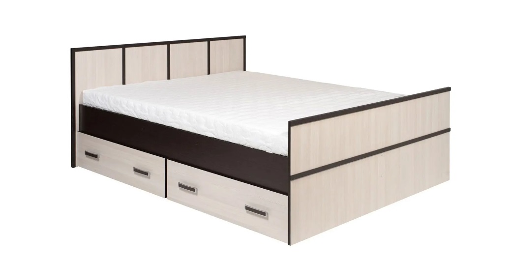 Кровать Сакура со спальным местом1200 выполнена из ЛДСП высокого качества в контрастных цветах венге/ дуб белёный данная модель оснащена двумя выдвижными ящиками, в которых можно хранить постельные принадлежности или игрушки, изделие не имеет ножек, а значит избавит вас от скопления пыли под основанием.