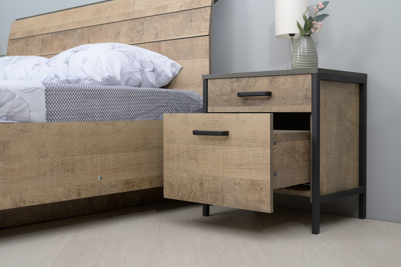 Тумба прикроватная Трувор 13.290 позволит держать около кровати все необходимые и важные предметы. На поверхности изделия вы можете красиво разместить интересный светильник, будильник или фотографию любимой семьи. Два вместительных выдвижных ящика пригодятся для хранения увлекательной книги, маски для сна и ночного крема. Индустриальная мебель Трувор выполнена в стиле лофт.