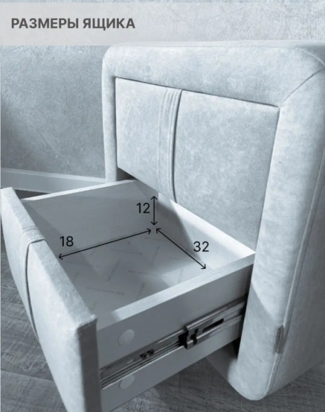 Тумба прикроватная "Софи 2", внесет разнообразие в ваш интерьер. Полностью мягкая, закругленные углы, ручки в виде ремешка, все это делает ее абсолютно безопасной. Два выдвижных ящика с шариковыми направляющими вмещают в себя много необходимых вам вещей.