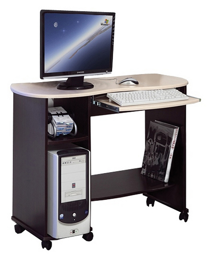 Современный стол «Костер-3» – интересное решение для малогабаритных квартир, которое способно и украсить интерьер, и сэкономить полезную площадь. Несмотря на простую конструкцию, стол имеет всё для размещения стационарного компьютера. Под столешницей имеется выдвижная полочка для клавиатуры; две полки в корпусе можно использовать для хранения книг, дисков и других мелочей. Чтобы напольное покрытие не портилось под тяжестью стола, он устанавливается на пластиковые колёса-опоры. Последние также обеспечивают изделию превосходную мобильность.