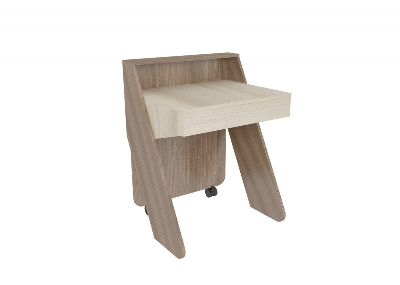 Компактный стол для ноутбука. Он мобильный, на колесных опорах. Можно использовать его как письменный стол, как стол для работы с ноутбуком или как журнальный столик. Есть выдвижной ящик для различных мелочей.