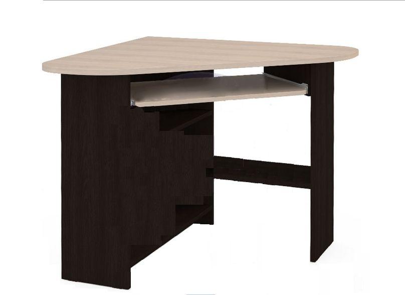 Качественный компьютерный стол ПКС-4 – отличное решение как для школьника, так и для студента. Конструкция изделия позволяет экономить полезное пространство в помещении, так как стол можно поставить в любую пустующую угловую зону. Под столешницей со скруглёнными углами имеется выдвижная панель для клавиатуры, а в корпусе предусмотрены полки для размещения книг, дисков и прочих принадлежностей. Столешница и панель окрашены в светлый цвет и красиво гармонируют с тёмными деталями.