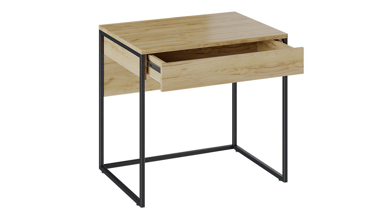 Лофт Стол компьютерный тип 1 — модель на металлическом основании Черного цвета, со столешницей ЛДСП в декоре Бунратти. Стол оборудован выдвижным ящиком на шариковых направляющих. Стол является составной частью серии Лофт.