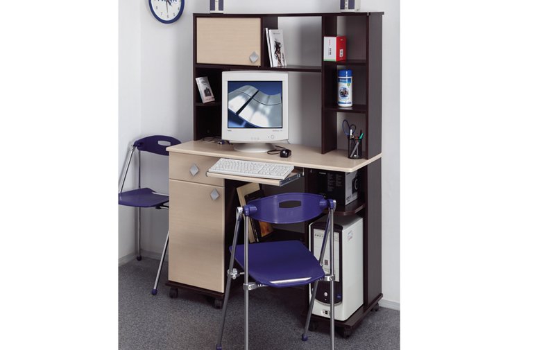 Качественный стол для компьютера «Костер-6» – практичный представитель корпусной мебели, заслуженно пользующийся большой популярностью. Он привлекает довольно простой конструкцией, которая позволяет изделию вписываться практически в любой интерьер. Слева под столешницей имеется выдвижной ящичек и отдел, закрытый глухой распашной дверцей. Справа есть отсек для системника и небольшая ниша. Особого внимания заслуживает надстройка над столешницей, имеющая много полок и отделение с распашной створкой. Для лёгкого передвижения и защиты напольного покрытия стол комплектуется пластиковыми колёсами-опорами. Размер ниши под монитор ПК: Высота 440 Ширина 740.