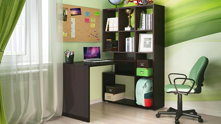 Компьютерный стол «Костер-8» - идеальное решение для организации рабочего места. Есть шесть высоких полок над столом и четыре под ним. Последние удобно использовать под системный блок компьютера или для больших принадлежностей. Благодаря двигающейся рабочей поверхности, стол легко можно трансформировать в прямой и разместить его вдоль стены в зависимости от ваших предпочтений и удобству постановки в комнате.