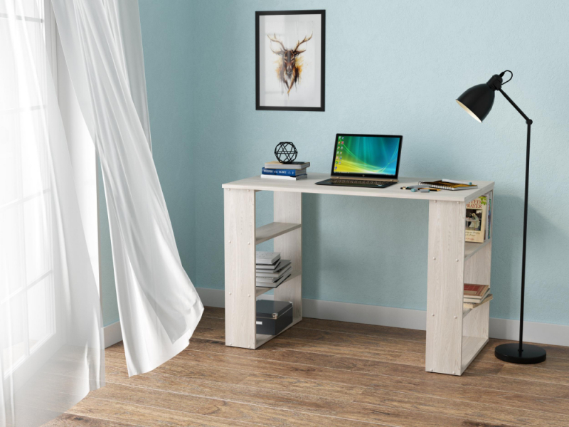 Простой и очень удобный компьютерный стол станет отличным местом для учебы или офисного пространства.Просторная глубокая столешница, где легко можно разместить монитор или ноутбук, учебники, письменные принадлежности.Открытые полки под столом обеспечивают быстрый доступ к нужным документам и папкам с бумагами.Стильный современный дизайн отлично будет смотреться и в офисе, и в молодежной комнате.