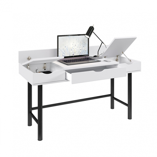 В столе предусмотрены отверстия для проводов, которые удачно можно скрыть благодаря закрытым нишам: