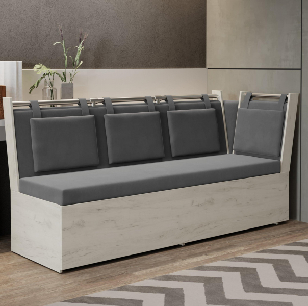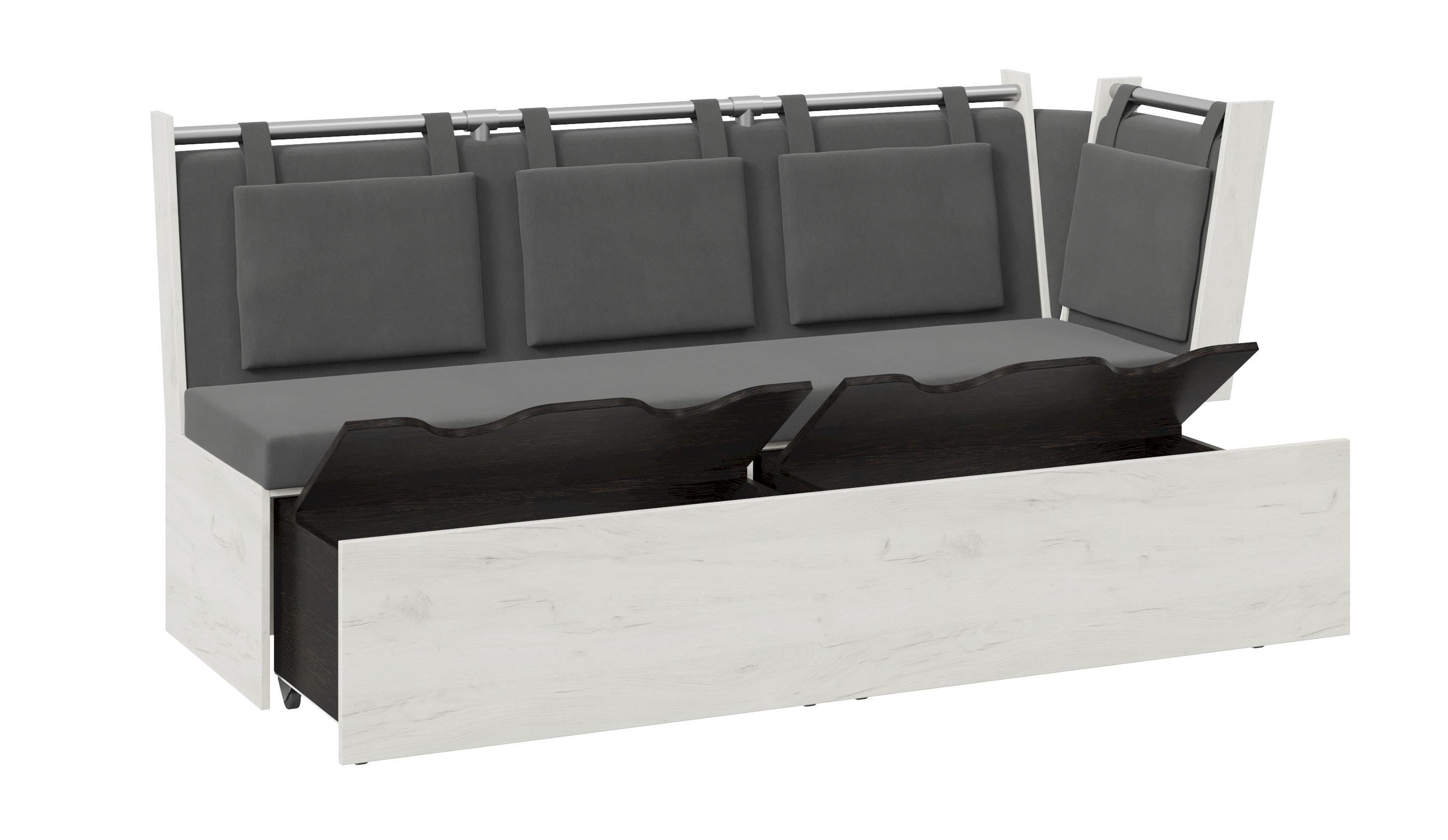 Скамья угл. Роденго со сп. мест дуб крафт бел/сер