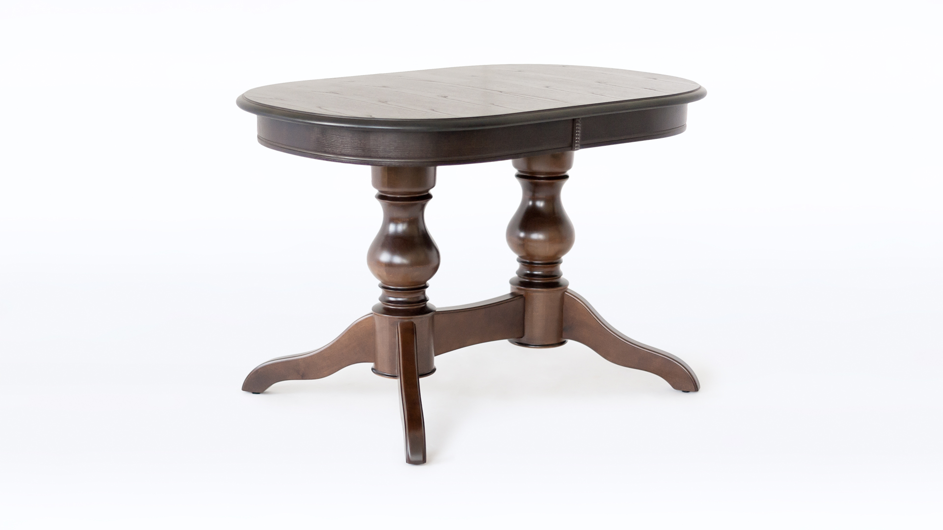 Фигурные опоры с резной отделкой придают не только красивый вид, но и делают конструкцию максимально устойчивой.Стол выполнен из массива березы, столешница покрыта шпоном дуба. Этот долговечный, безопасный, стильный предмет интерьера украсит гостиную, кухню, позволит комфортно рассадить максимальное количество гостей.