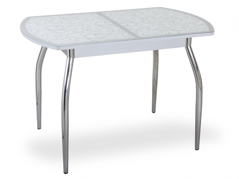 Каркас стола изготовлен из хромированного материала. При изготовлении столешницы применялось стекло с нанесённым на него рисунком.