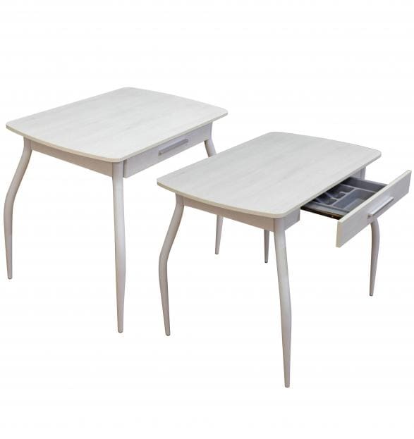 Маленький нераздвижной стол Граус М55 с выдвижным ящиком. Материал столешницы ЛДСП – гигиеничный, легко моющийся и термостойкий, к тому же не боится пятен от кофе, вина, пищевых продуктов. Особое внимание нами уделяется и безопасности за счет использования покрытия торцов стола пластиковой кромкой. Конструкция стола предусматривает крепление ножек к раме при помощи специальных болтов, чтобы при необходимости стол можно было легко разобрать для транспортировки. Данная модель может быть укомплектована по Вашему выбору прямыми или изогнутыми ножками, придающими столу помимо оригинальности дополнительную устойчивость.