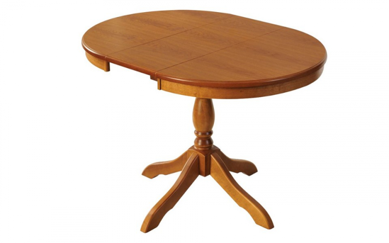 Столешница изготовлена из шпона дуба, а фигурная ножка выполнена из массива березы. Материалы, которые используются при производстве стола, обладают высокой устойчивостью к влаге, внешним повреждениям, а внешний вид не портится со временем.