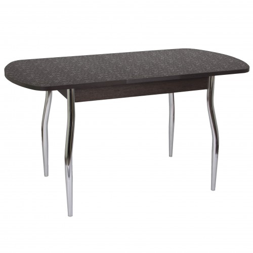Столешница изготовлена из ЛДСП (22 мм) с покрытием HPL-пластик (рисунок «цветы лотоса»). Стол раскладной. Главные преимущества столов с HPL-пластиком перед стеклянными поверхностями: - износостойкость к механическим повреждениям (царапинам, сколам и т.д.) - ударопрочность (столешница не разобьётся при ударе) - высокое шумопоглащение (нет дребезжащих звуков при соприкосновении с посудой и т.д.).Столешница оснащена синхронным механизмом, что позволяет при необходимости увеличить длину стола.