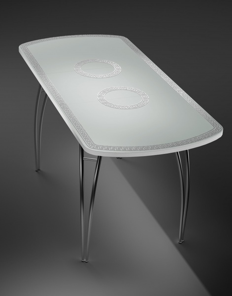 Обеденный стеклянный стол Версаль изготовлен из закаленного (термопрочного) стекла 4 мм. приклеенного на ЛДСП, хромированная труба. Модный стол прямоугольной формы, с закругленными краями комфортно обслужит семейные трапезы и наполнит Ваш дом светом.