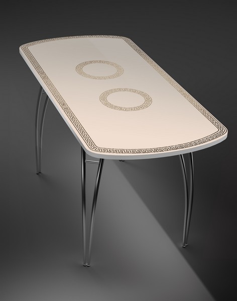 Обеденный стеклянный стол Версаль изготовлен из закаленного (термопрочного) стекла 4 мм. приклеенного на ЛДСП, хромированная труба. Модный стол прямоугольной формы, с закругленными краями комфортно обслужит семейные трапезы и наполнит Ваш дом светом.