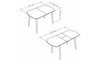 Универсальный дизайн вписывается в большинство интерьеров. Опоры в месте крепления имеют прямоугольную форму, что исключает шатание стола. Используемое на столешницах стекло закалено для безопасности пользования.